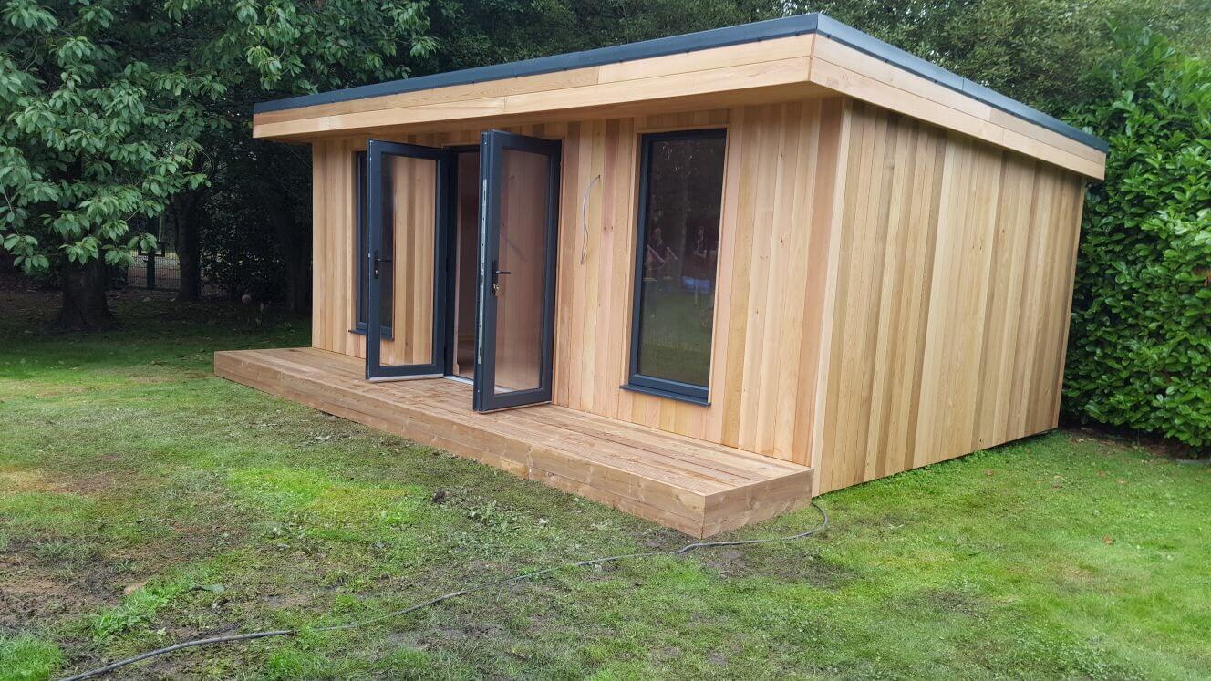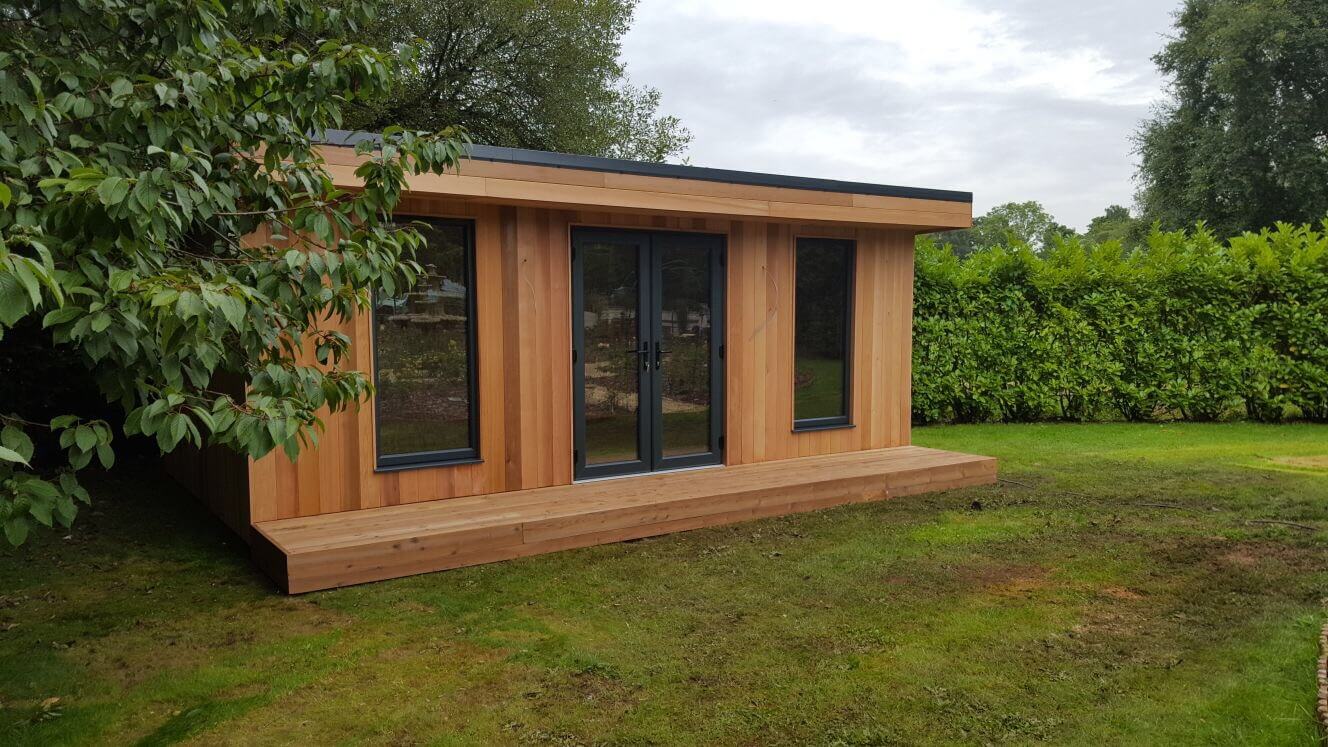 The garden room is manufactured using SIP Panels throughout providing excellent U Values. The garden room is then clad externally with Western Red Cedar, giving a stunning natural finish.