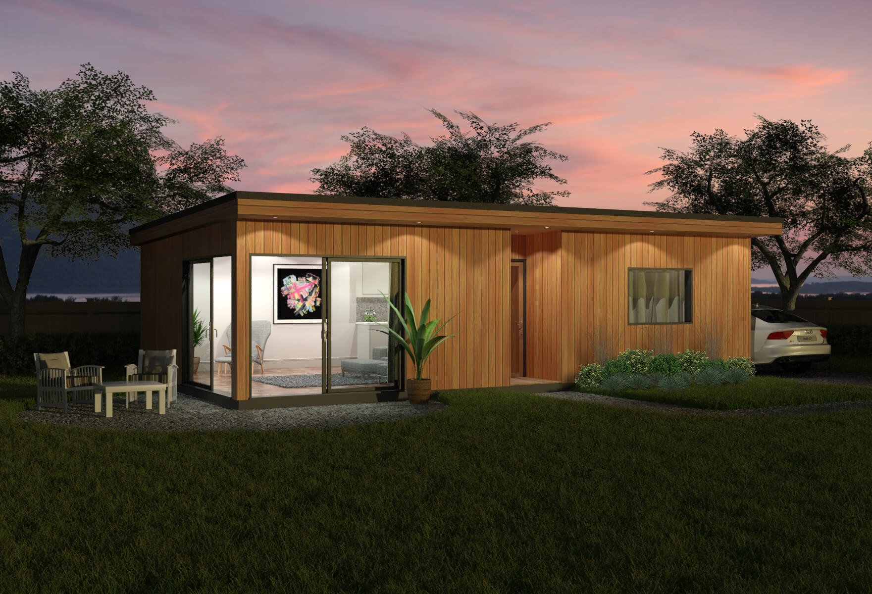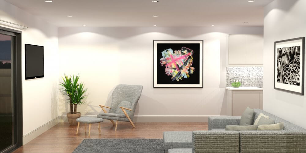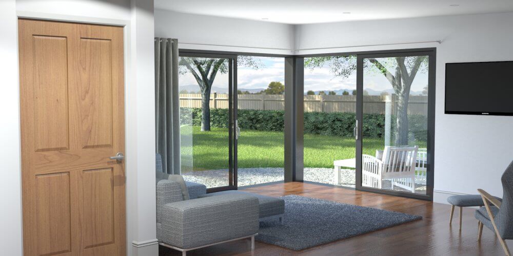 The Grasmere Granny Annex offers plenty of natural light from 2 angles. Creating a open feel for the summer months or an enclosed garden room feel for those cold and dull winter months, this granny annex is customisable for all requirements. Our Granny annex or teenage accommodation is an ideal layout for a two-person, living accommodation. This construction offers a naturally bright, living space, with a consolidated bedroom/on-suite bathroom.