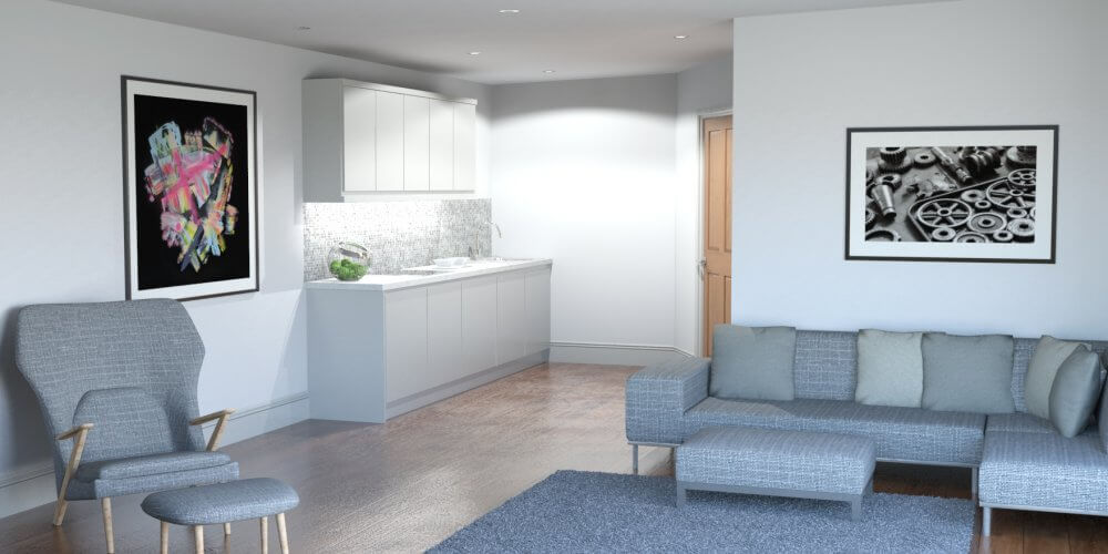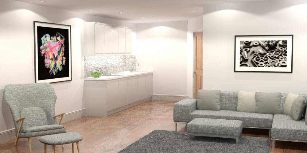Open plan living space incorporating the kitchen area