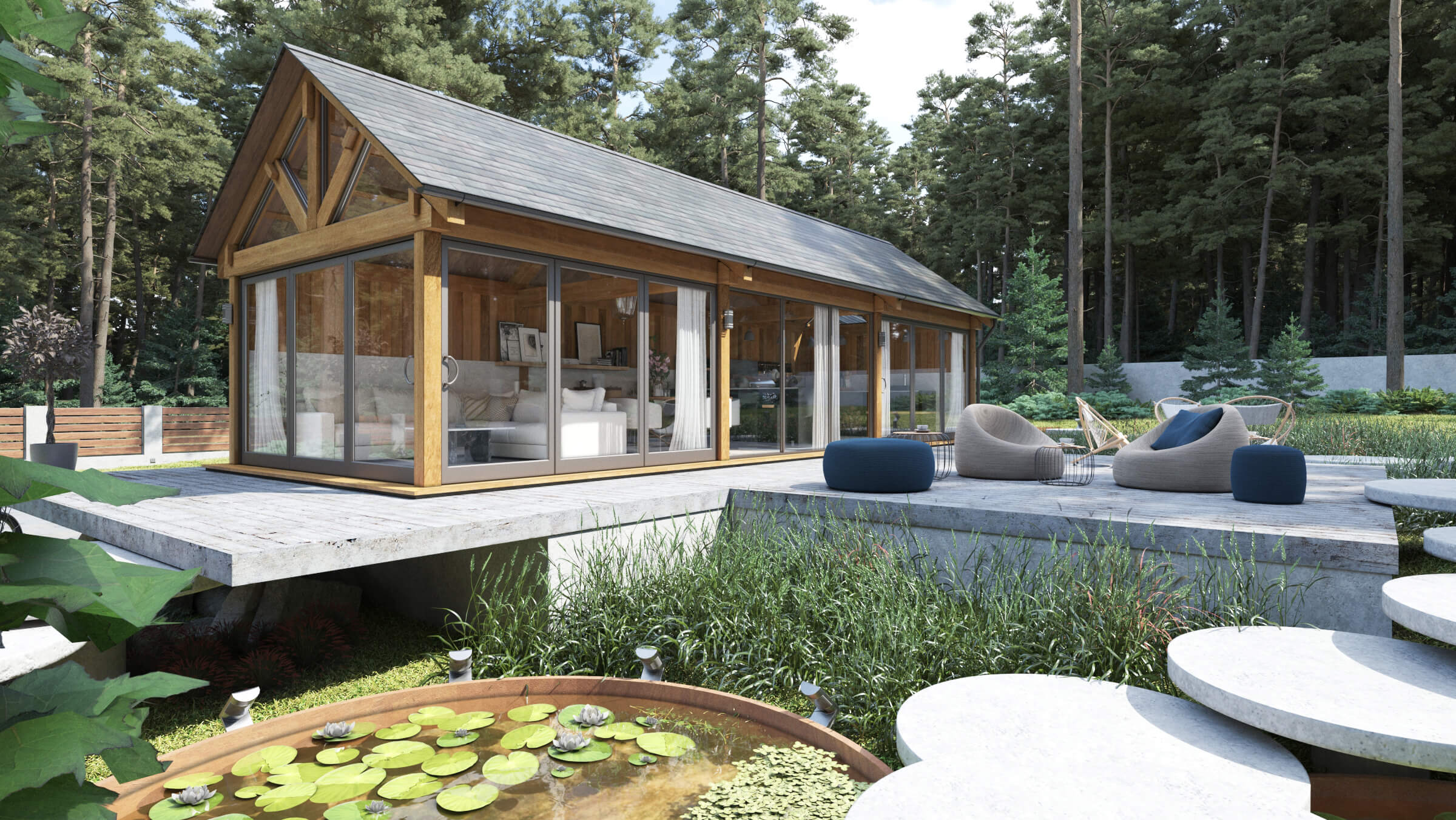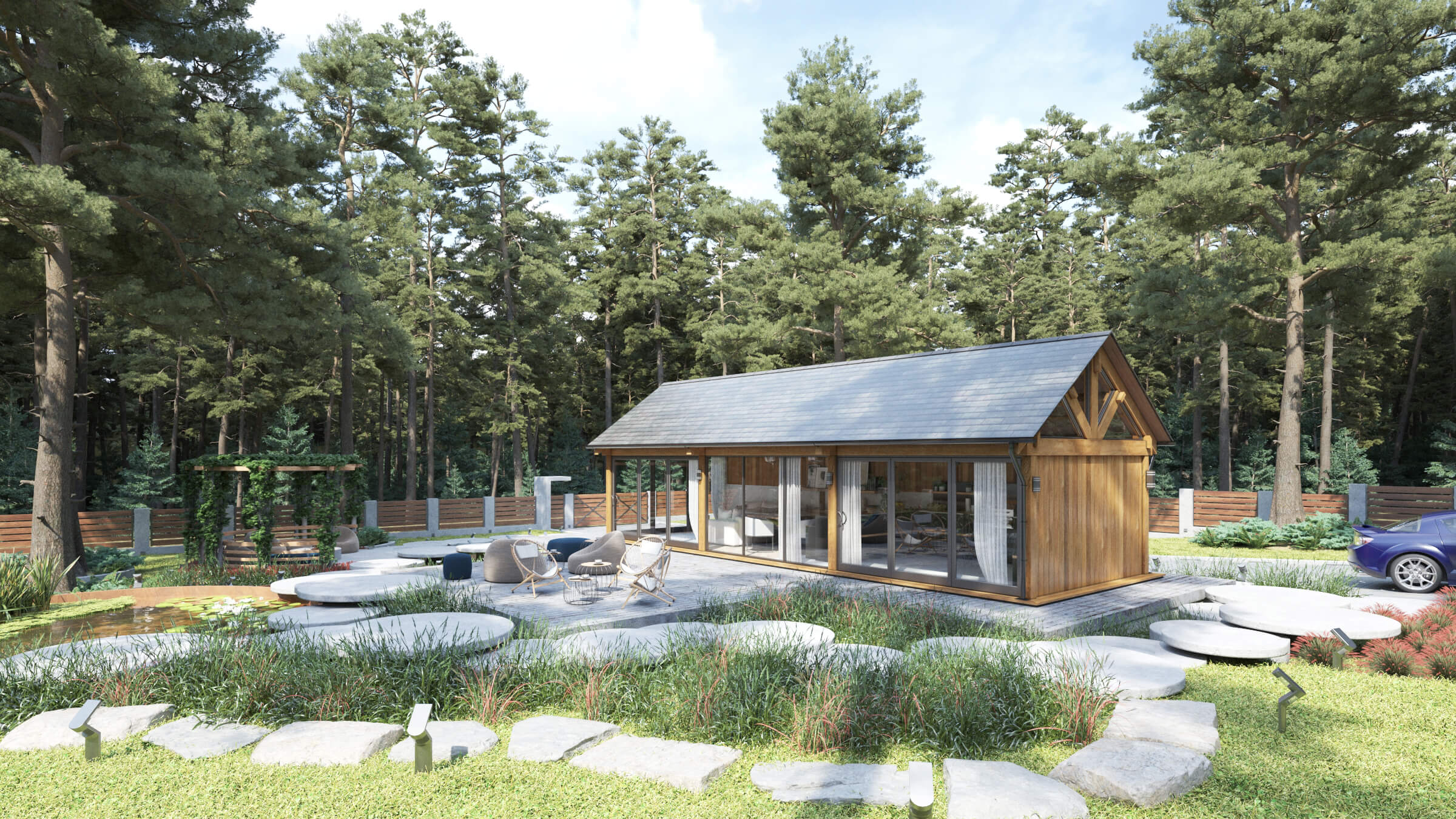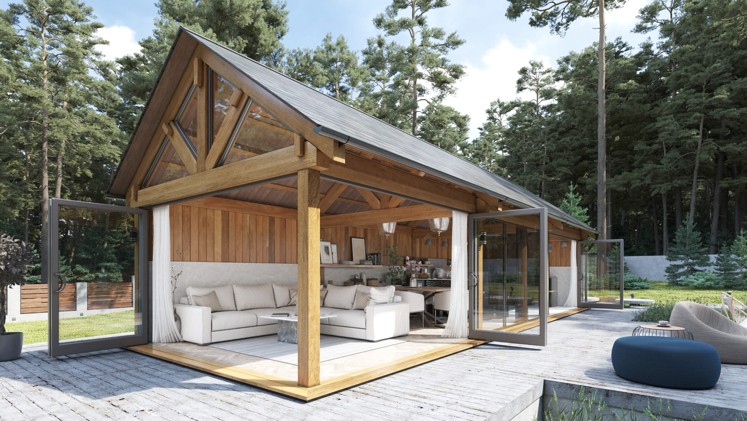 Clad with attractive and durable premium Western Cedar Timber